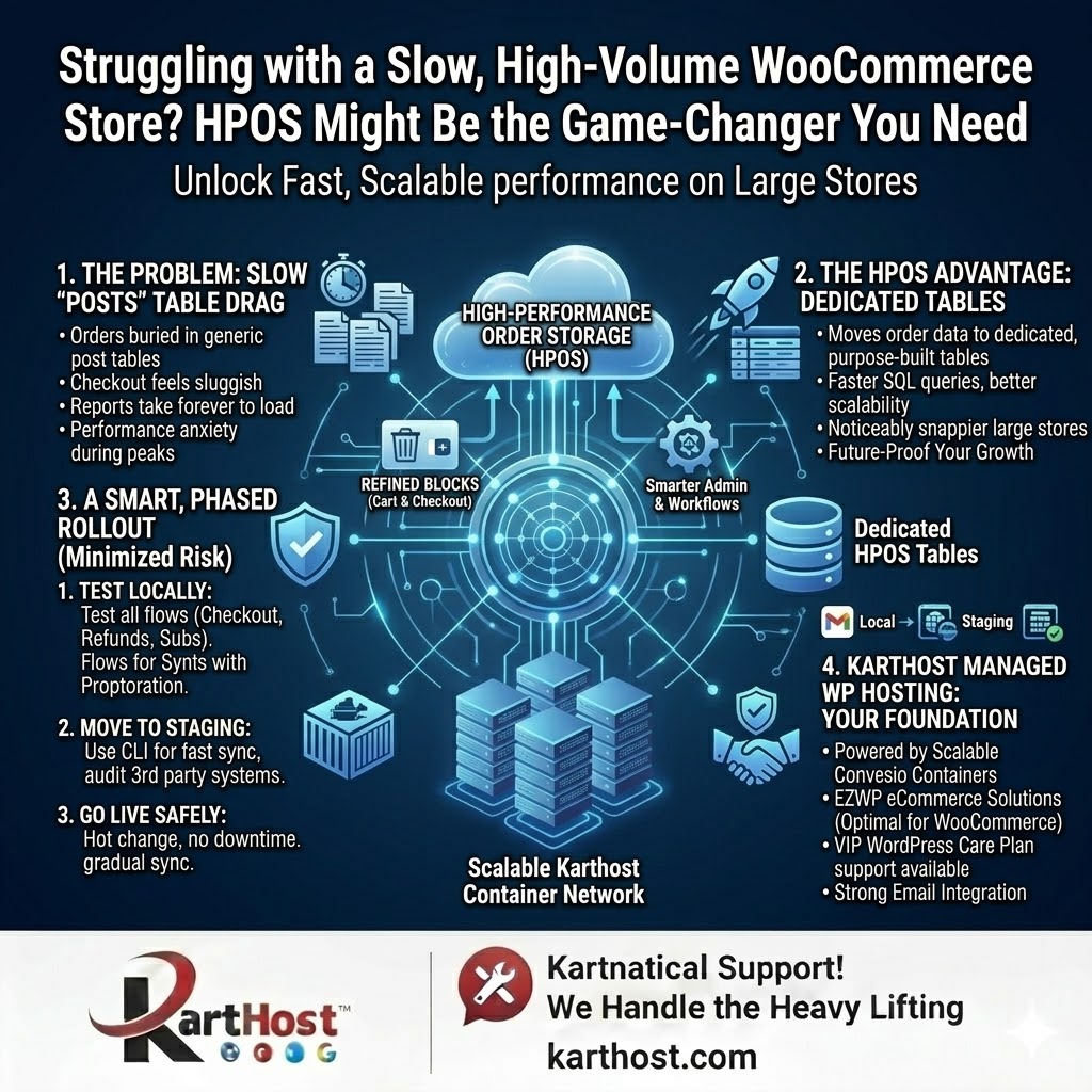 At Karthost, we specialize in managed WordPress hosting powered by scalable, self-healing Convesio container technology. Our plans are built for exactly the kind of high-performance eCommerce needs that HPOS addresses. We handle the heavy lifting—core and plugin updates, security monitoring, and performance optimization—so you can focus on growing your store.